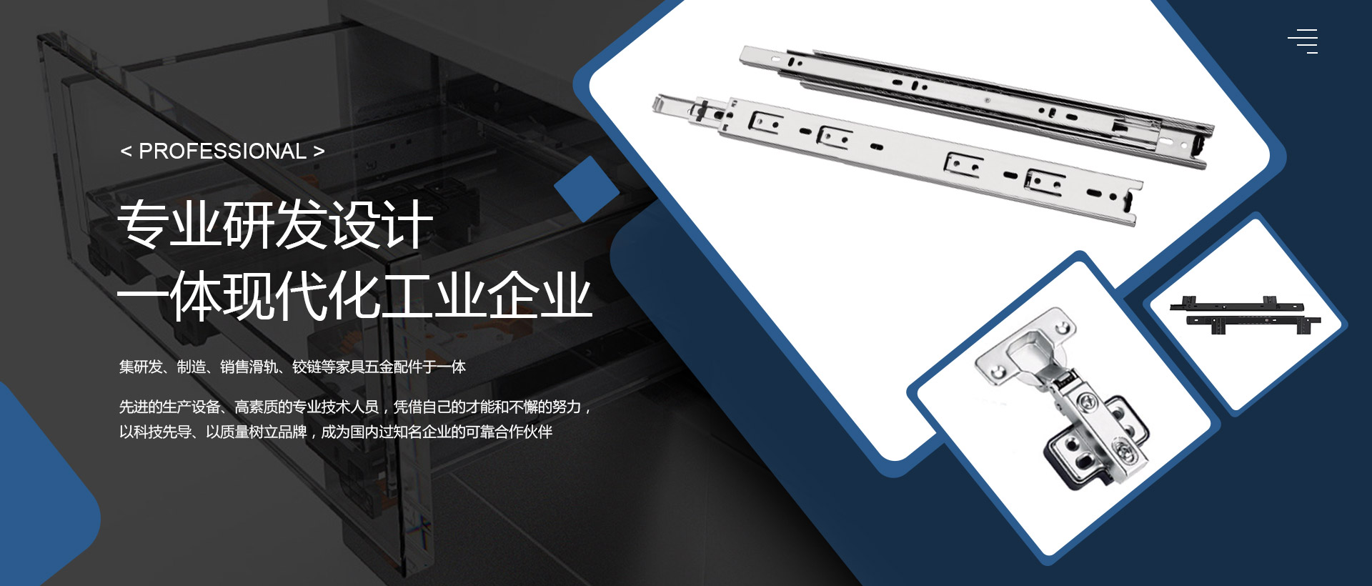 一家集研發(fā)、制造、銷售于一體的現(xiàn)代工業(yè)企業(yè),主要生產(chǎn)滾珠軸承滑塊、鉸鏈等家具五金配件